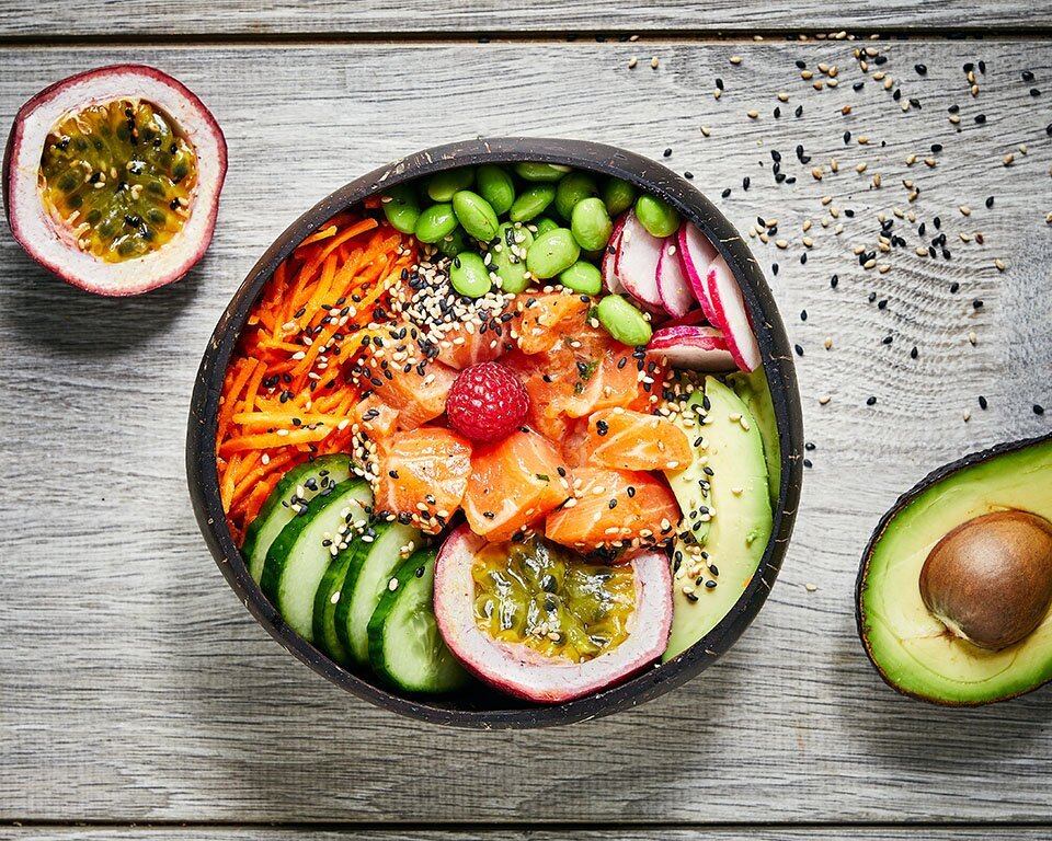On retrouve aussi des recettes signatures (comme le « Poké Saumon » ou le « Super Protéiné ») et même des options « Hot » pour les amateurs de chaud.