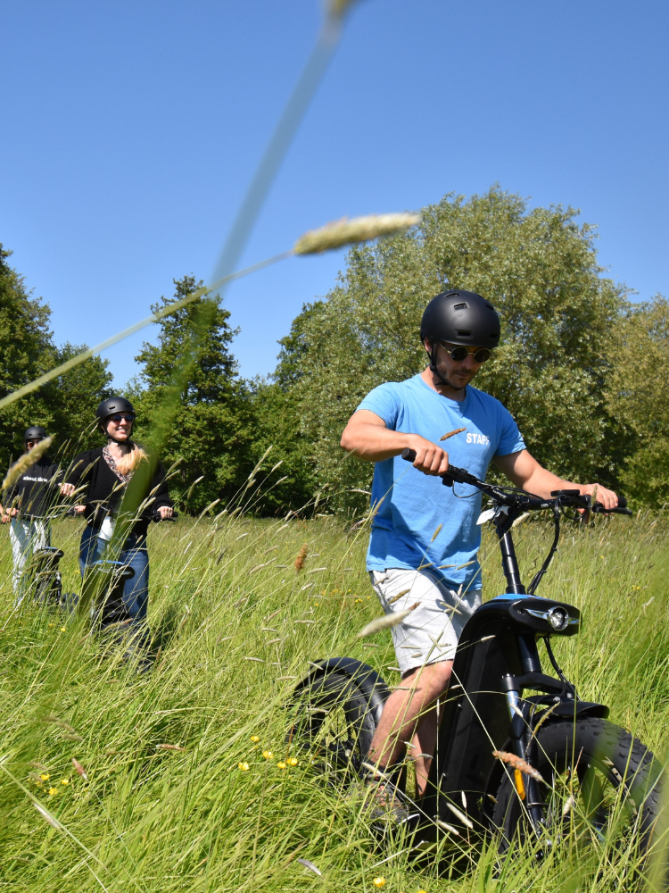 Pendant environ 1 heure, munis d’un casque et de votre trottinette électrique, partez à l’aventure sur les chemins autour de Deauville. L’itinéraire combine routes, voies vertes et pistes plus sauvages pour varier les sensations tout en découvrant la campagne normande !
