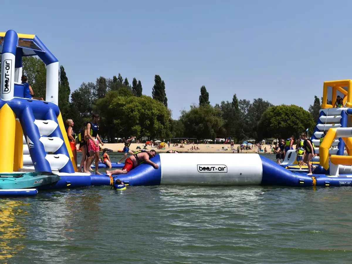 Parmi les incontournables du site, l’Aquaparc du lac attire tous les regards. Il s’agit d’un parcours flottant gonflable, installé directement sur l’eau, composé de modules variés : toboggans, trampolines, murs d’escalade, ponts à franchir et plateformes de saut.