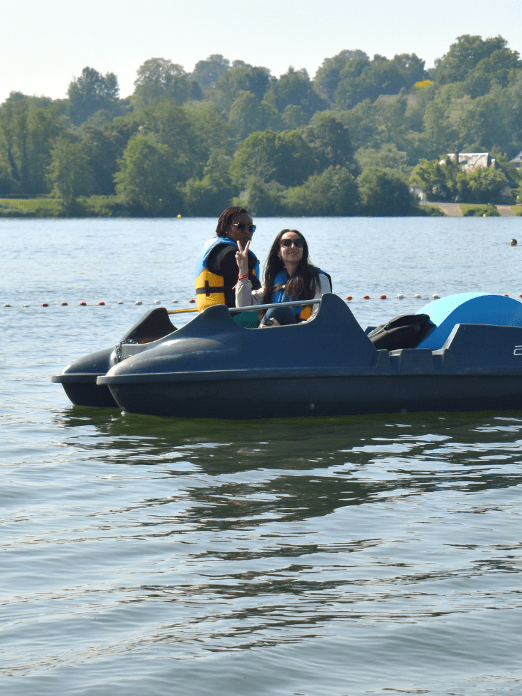 Avant de partir, l’équipe du lac vous fournit un gilet de sauvetage et vous donne les consignes de sécurité, puis vous naviguez en toute autonomie sur une zone réservée aux pédalos, loin des bateaux motorisés. Vous pourrez explorer les rives sud du lac ou même contourner la petite île centrale, le tout dans un cadre calme et verdoyant typique du Pays d’Auge.